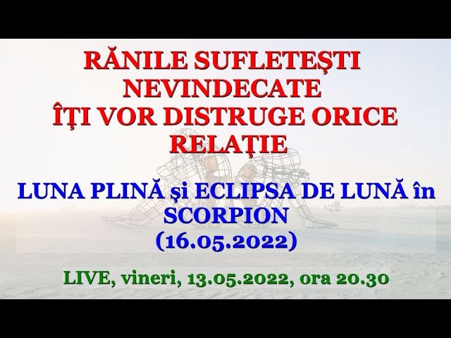 Luni, 16 mai, va avea loc un eveniment care scoate la suprafață toate rănile importante pe care nu le-am rezolvat în trecut: Luna Plină în Scorpion și Eclipsa totală de Lună în Scorpion.