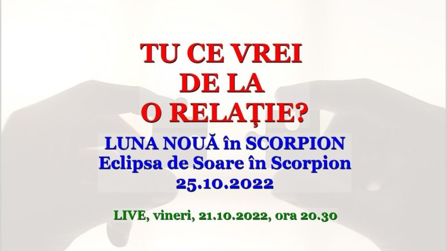 Când refuzi să vezi și să auzi mesajele care te avertizează că nu ești pe drumul cel bun, Universul intervine cu semne din ce în ce mai evidente. Unul dintre aceste semne este Luna Nouă în zodia Scorpionului, și Eclipsa de Soare care vor avea loc marți, 25.10.2022.
