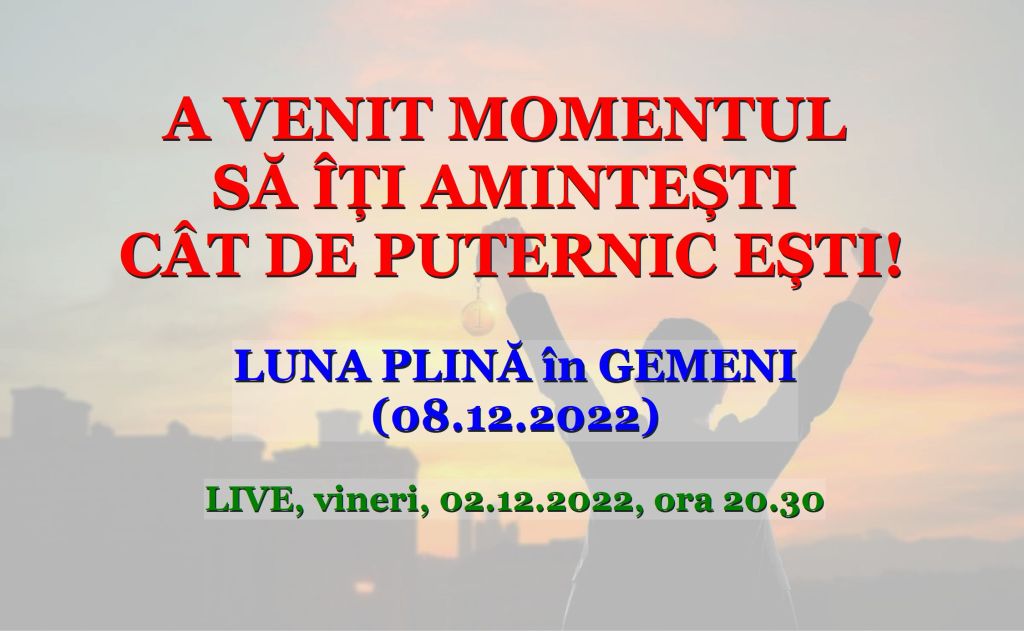 Luna plină în Gemeni, din 08 decembrie 2022, vine cu un avertisment foarte dur pentru cei care se irosesc și își irosesc darul primit – viața – pentru a controla tot și pe toți.