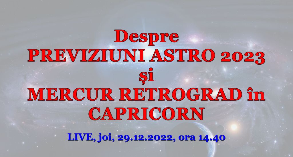 Te invit să urmărești emisiunea despre previziuni astro 2023 la TV Arad, joi, 29 decembrie, de la ora 20. Pentru asta, te rog să accesezi pagina