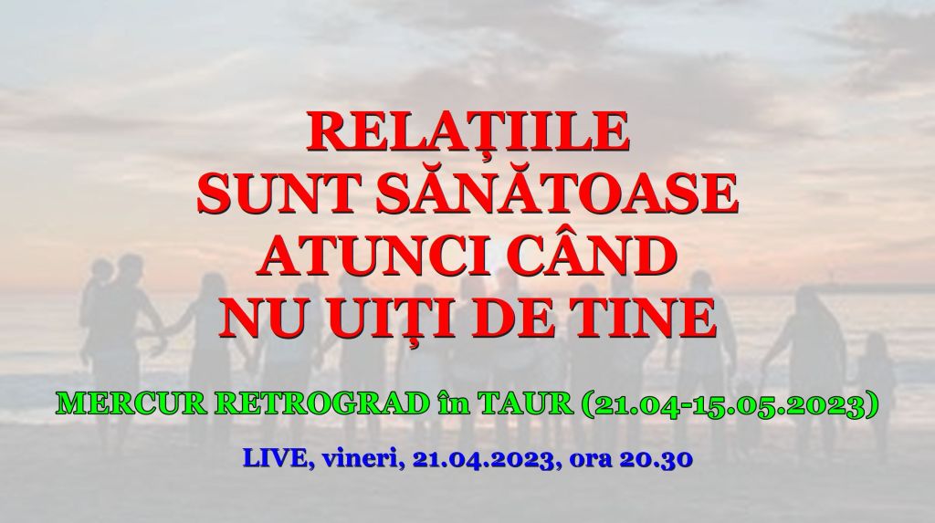 Ce efect va avea asupra tuturor, asupra relațiilor, ce mesaje ne aduce și ce ar trebui să facem, voi povesti pe larg într-o emisiune transmisă în direct vineri, 21.04.2023, de la ora 20.30 pe canalul meu YouTube și pe pagina mea Facebook.