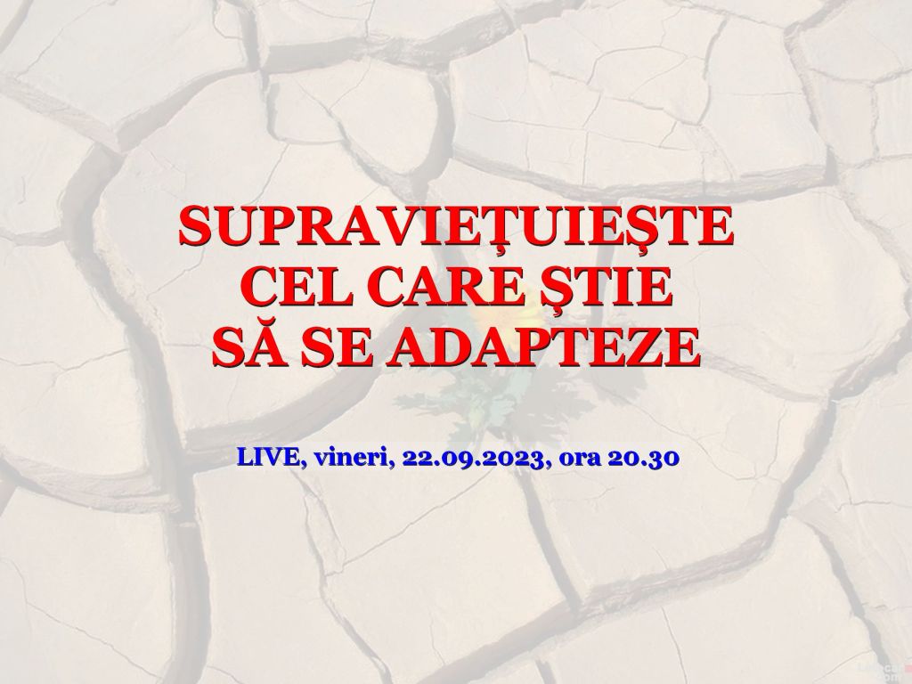 Doar cei care se adaptează în fiecare zi vor putea supraviețui și vor avea o viață normală. Dar pentru asta e nevoie ca, mai întâi, să aflăm că adaptarea este obligatorie, și cum putem să o facem.
