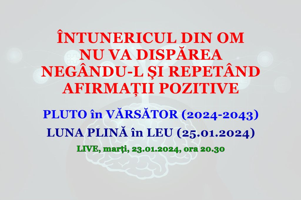 În data de 21 ianuarie, planeta care reprezintă subconștientul, Pluto, a intrat în zodia umanității, Vărsătorul, și a făcut-o împreună cu astrul zilei, Soarele, adică lumina. Asta înseamnă că pentru următorii 20 de ani lumina pe care o proclamăm în afară va lumina mai puternic umbra, subconștientul întunecat.