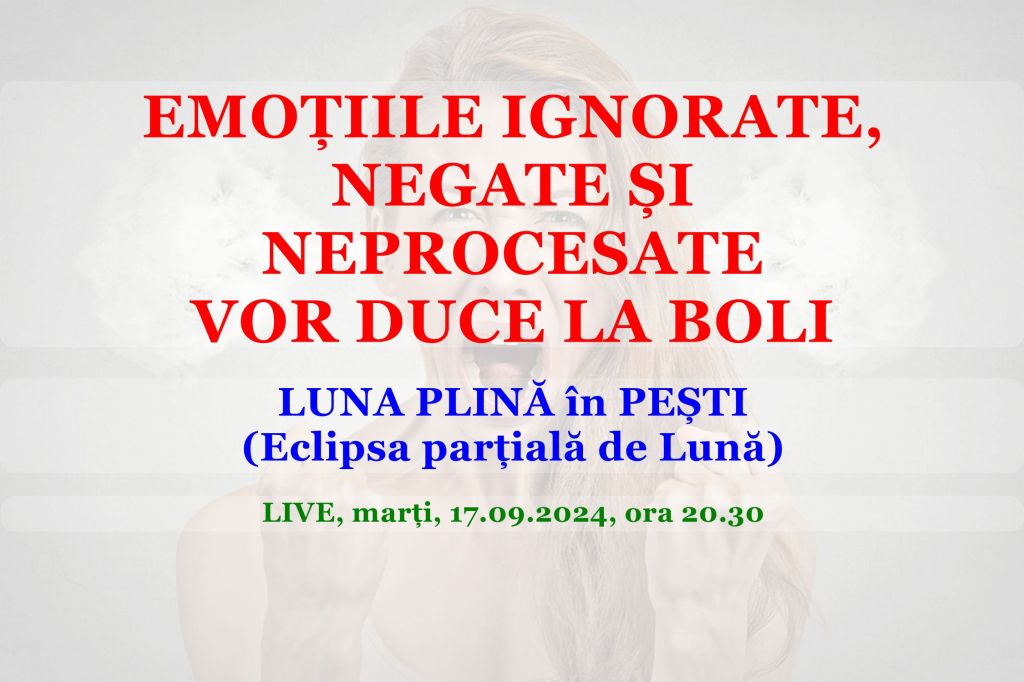 Mai multe despre emoții, cum le recunoaștem, de ce le ignorăm și nu le procesăm, voi vorbi în cadrul unei emisiuni în direct transmisă marți, 17.09.2024 de la ora 20.30 pe canalul meu YouTube și pe pagina mea Facebook. Te aștept cu drag.