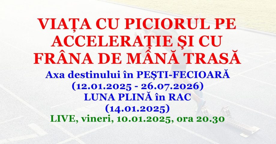 Trezirea la realitate poate veni în următoarea perioadă când axa destinului va trece în Pești (Nodul Nord) – Fecioară (Nodul Sud), iar asta înseamnă să ne reamintim că știm să ne organizăm viața, doar că trebuie să ne și urnim din loc. „Șutul” ne va fi dat de Marte (planeta acțiunii) retrograd conjunct cu Luna plină în Rac din 14.01.2025.