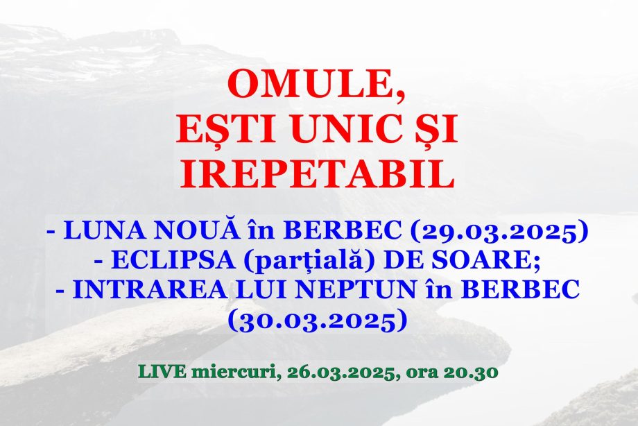 Mai multe despre toate astea te invit să urmărești miercuri, 26.03.2025 de la ora 20.30 în cadrul unei emisiuni transmisă pe pagina mea Facebook și pe canalul meu YouTube. Te aștept cu drag.