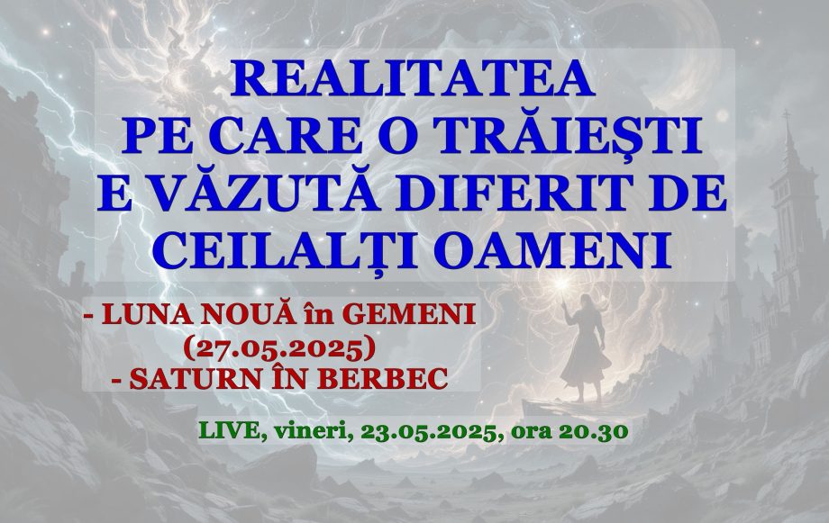 REALITATEA PE CARE O TRĂIEȘTI E VĂZUTĂ DIFERIT DE CEILALȚI OAMENI - LUNA NOUĂ ÎN GEMENI (27.05.2025) - SATURN intră în BERBEC Să zicem că ai o viață personală de care te plângi într-una: ba că nu ai ce vrei, ba că partenerul/partenera nu te înțelege, ba că te obosesc copiii că nu ascultă deloc; …