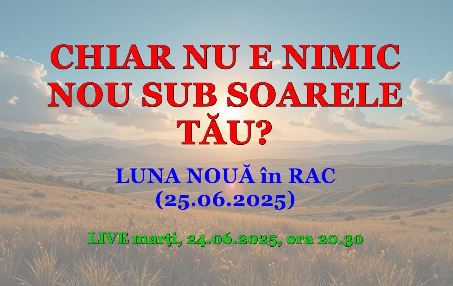 CHIAR NU E NIMIC NOU SUB SOARELE TĂU? (Luna Nouă în Rac - 25.06.2025) Când o situație se repetă în viața ta, spui „eh, nimic nou sub soare!”, transmițând că ceea ce s-a întâmplat nu este nou, ci ceva vechi s-a repetat. Conform Dicționarului de Expresii și Citate celebre din 1968, expresia „Nimic nou sub …